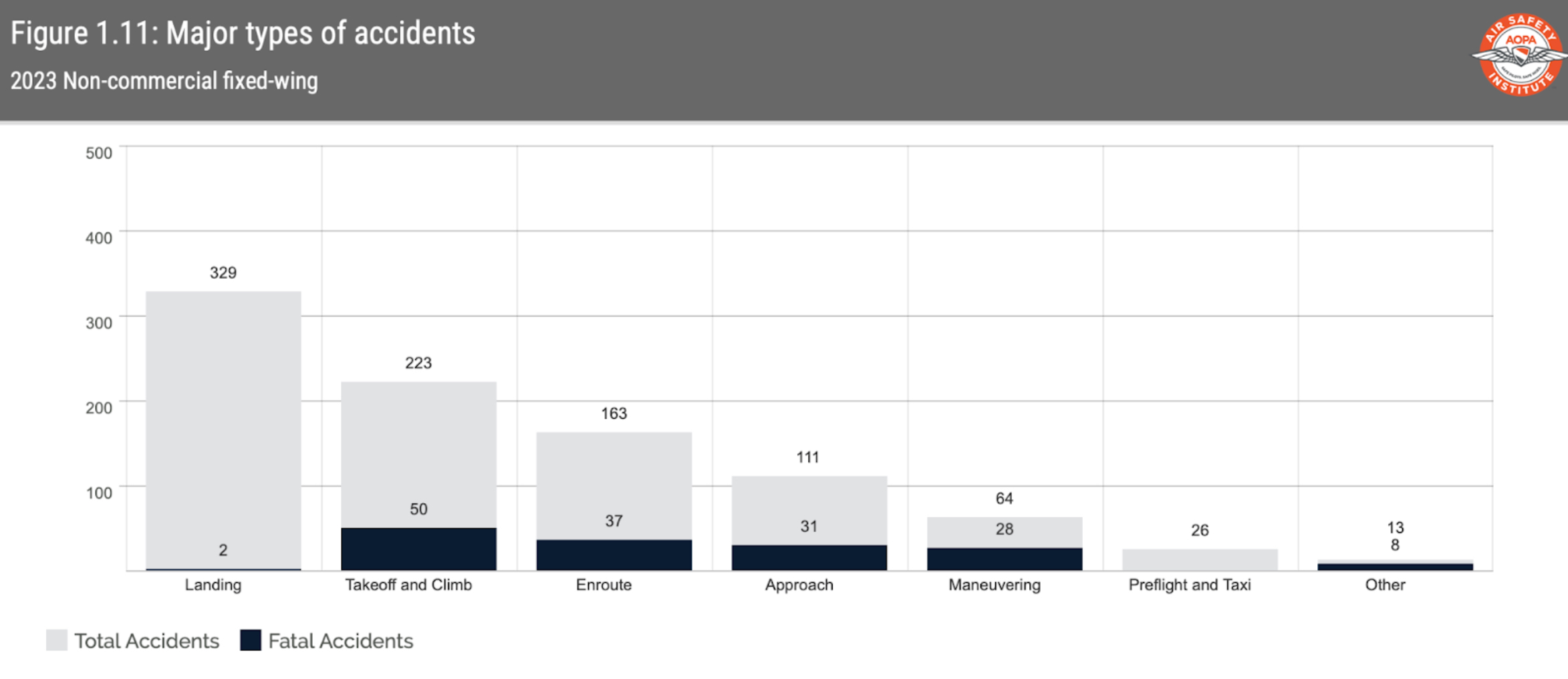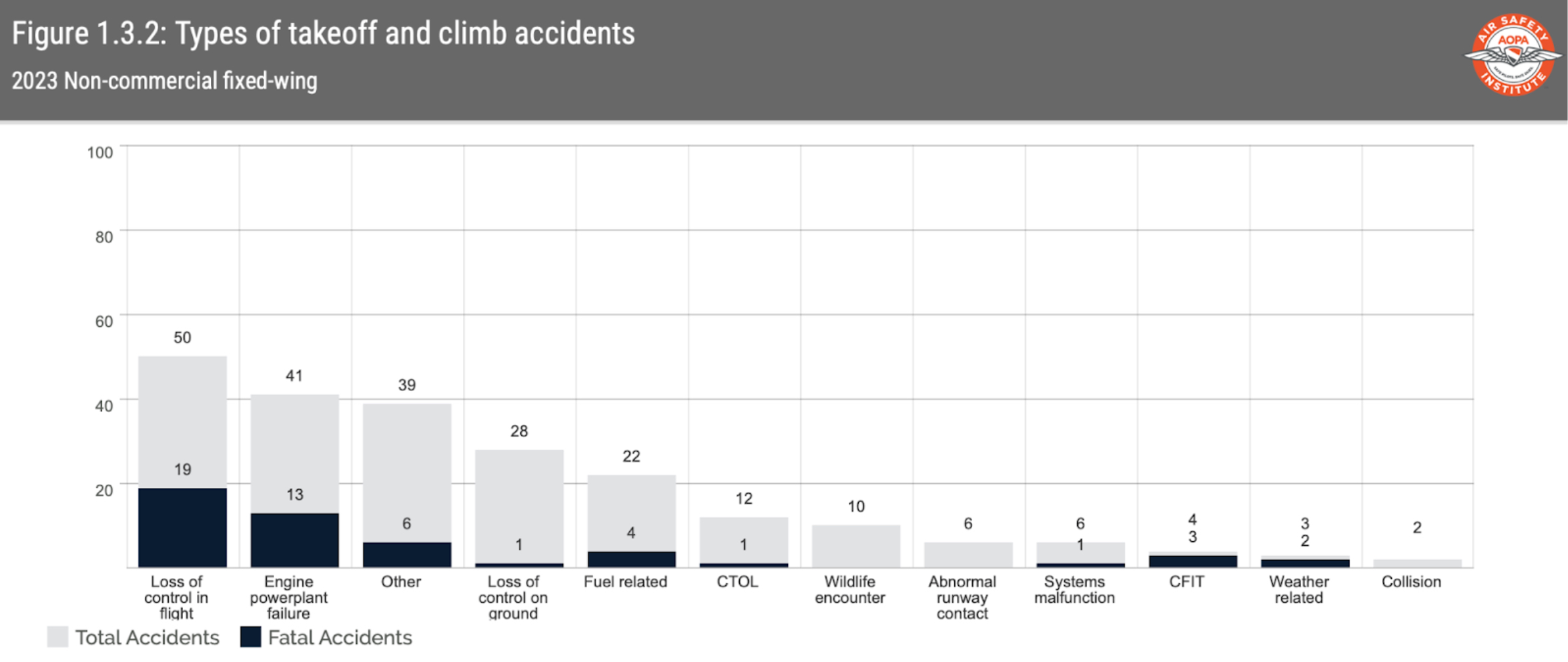 This isn’t a weather issue, by the way, as 94% of takeoff and climb accidents happen during day VMC conditions. It’s also not really a matter of pilot experience: 44% of these accidents had a Commercial or ATP on board.